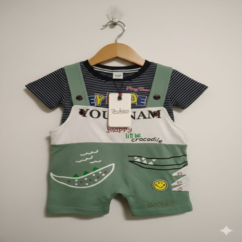 Baby Boys Green Cartoon Summer Romper Set – Soft Cotton Kids Dress in Bangladesh