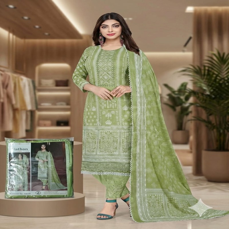 Ice Cream Olive Green Cotton Three Piece – Premium Embroidery Unstitched Dress Bangladesh